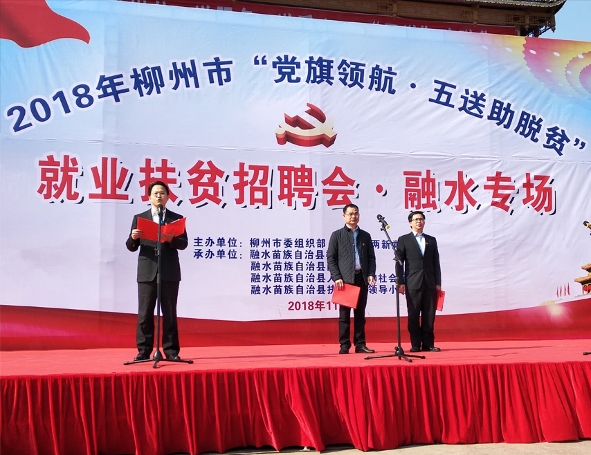 為貫徹落實(shí)黨中央、自治區(qū)黨委和柳州市委決勝脫貧攻堅(jiān)的重大決策部署,11月22日,柳州市委組織部、市兩新黨工委聯(lián)動(dòng)全市規(guī)模大、有潛力、熱心公益的兩新組織在融水縣民族體育場(chǎng)成功舉辦“黨旗領(lǐng)航·五送助脫貧”融水專場(chǎng)就業(yè)扶貧招聘會(huì),育才黨支部派代表參加了活動(dòng)。