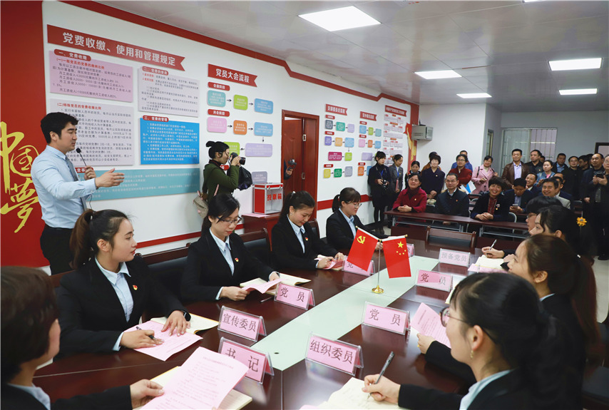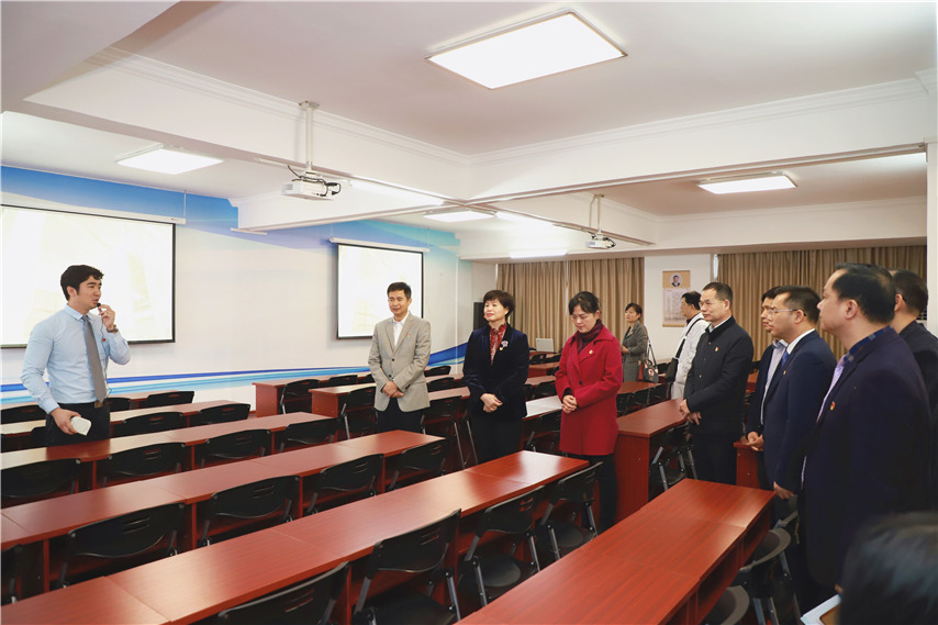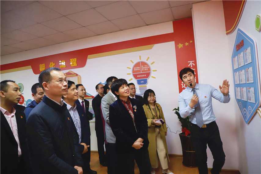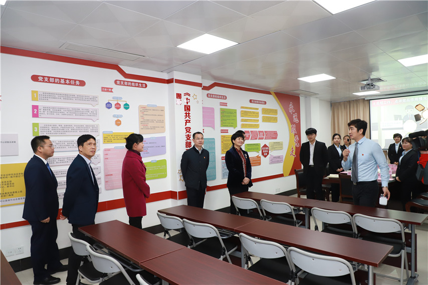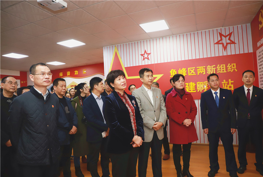 揭牌儀式前,由魚峰區(qū)委組織部副部長(zhǎng)唐旭為全體人員講解了魚峰區(qū)兩新組織黨建孵化站的六大主題功能室,并現(xiàn)場(chǎng)觀摩了“三會(huì)一課”的實(shí)操演練。