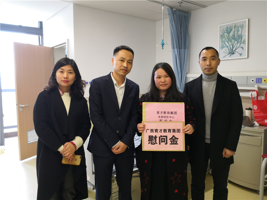 近日,廣西育才教育工會代表一行探望慰問了產(chǎn)婦職工李嬋、梁立麗、因病住院的職工黃慧婷,把慰問金和全體教職工的祝福送到她們手中,為她們送去關(guān)懷和溫暖。