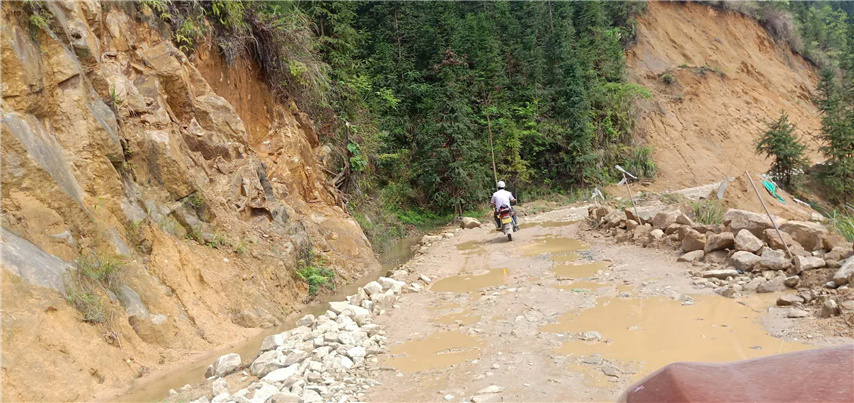 ▲桿洞鄉(xiāng)雨后的土路泥濘不堪