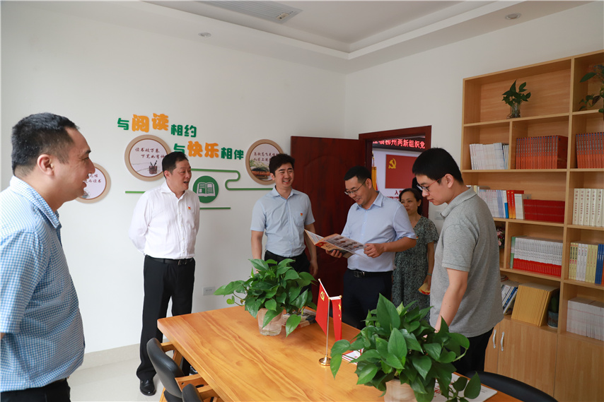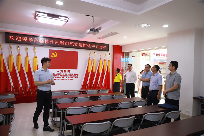 調(diào)研組第二站實(shí)地查看了柳州兩新組織黨建孵化中心暨魚峰區(qū)兩新組織黨建孵化站的研習(xí)室、培訓(xùn)室、圖書室、談心室、實(shí)操室、黨史長(zhǎng)廊和活動(dòng)園地;觀摩了支部黨員大會(huì)接收預(yù)備黨員的情景模擬。調(diào)研組對(duì)孵化站“入殼孵化”實(shí)現(xiàn)“三化”的做法大為贊賞(化無(wú)為有,幫助沒(méi)有黨員的兩新組織發(fā)展黨員;化零為整,集中零散黨員建立聯(lián)合黨支部;化弱為強(qiáng),幫助整頓軟弱渙散黨組織,實(shí)現(xiàn)“雙強(qiáng)六好”),座談會(huì)上,我培訓(xùn)學(xué)院副院長(zhǎng)趙彬和魚峰區(qū)委組織部副部長(zhǎng)唐旭分別作了介紹。
