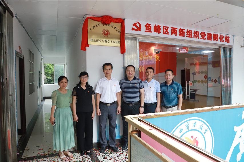 7月12日,廣西大學(xué)馬克思主義學(xué)院理論研究與教學(xué)實踐基地揭牌儀式在柳州兩新組織黨建孵化中心和魚峰區(qū)兩新組織黨建孵化站隆重舉行。廣西大學(xué)馬克思主義學(xué)院黨委書記周瑞超、副處級組織員冷相宜、柳州市委組織部組織四科科長池福波、魚峰區(qū)委組織部副部長于俊發(fā)、魚峰區(qū)兩新組織黨工委副書記莫翔芬、廣西育才教育集團(tuán)聯(lián)合黨委書記蔣華出席參加了揭牌儀式。