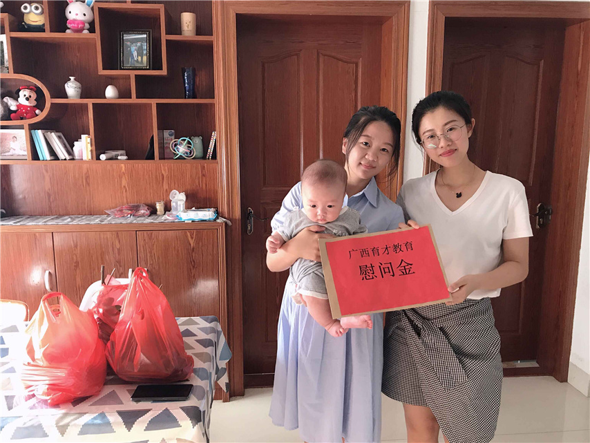 近日,集團工會代表一行探望慰問了產(chǎn)婦職工覃慧蘭、熊麗君老師,把慰問金和全體教職工的祝福送到她們手中,為她們送去關懷和溫暖。