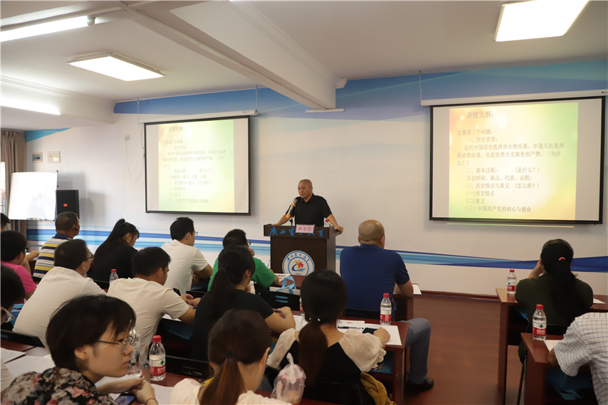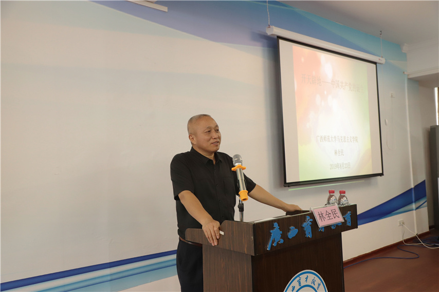 廣西師范大學(xué)馬克思主義學(xué)院副教授林全民博士以《開天辟地——中國共產(chǎn)黨的誕生》為題,就做一個(gè)充滿正能量的黨員和中國共產(chǎn)黨的光輝歷程及優(yōu)良傳統(tǒng)內(nèi)容進(jìn)行詳細(xì)的授課。