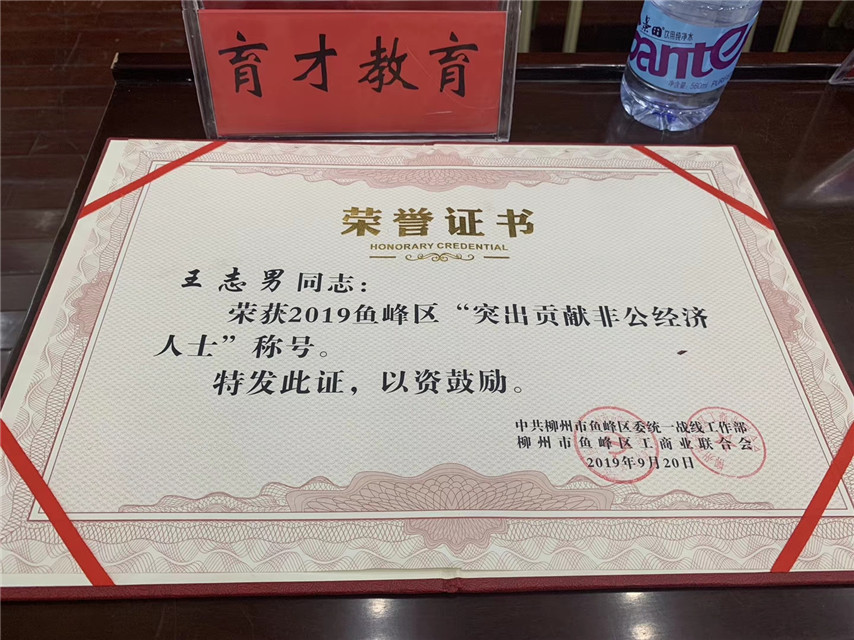 9月20日下午,魚(yú)峰區(qū)“百家優(yōu)秀民營(yíng)企業(yè)和百名突出貢獻(xiàn)非公經(jīng)濟(jì)人士”表?yè)P(yáng)大會(huì)暨發(fā)展壯大民營(yíng)經(jīng)濟(jì)動(dòng)員大會(huì)在柳州市魚(yú)峰區(qū)政府召開(kāi),會(huì)上,魚(yú)峰區(qū)委書記唐作斌等區(qū)委領(lǐng)導(dǎo)對(duì)非公經(jīng)濟(jì)作出的貢獻(xiàn)給予了高度評(píng)價(jià),并對(duì)今后的非公經(jīng)濟(jì)發(fā)展方向等作了重要講話,會(huì)議對(duì)轄區(qū)優(yōu)秀民營(yíng)企業(yè)和百名突出貢獻(xiàn)非公經(jīng)濟(jì)人士進(jìn)行了表彰。育才集團(tuán)聯(lián)合黨委副書記、副總經(jīng)理王志男榮獲“2019魚(yú)峰區(qū)突出貢獻(xiàn)非公經(jīng)濟(jì)人士”榮譽(yù)稱號(hào)。