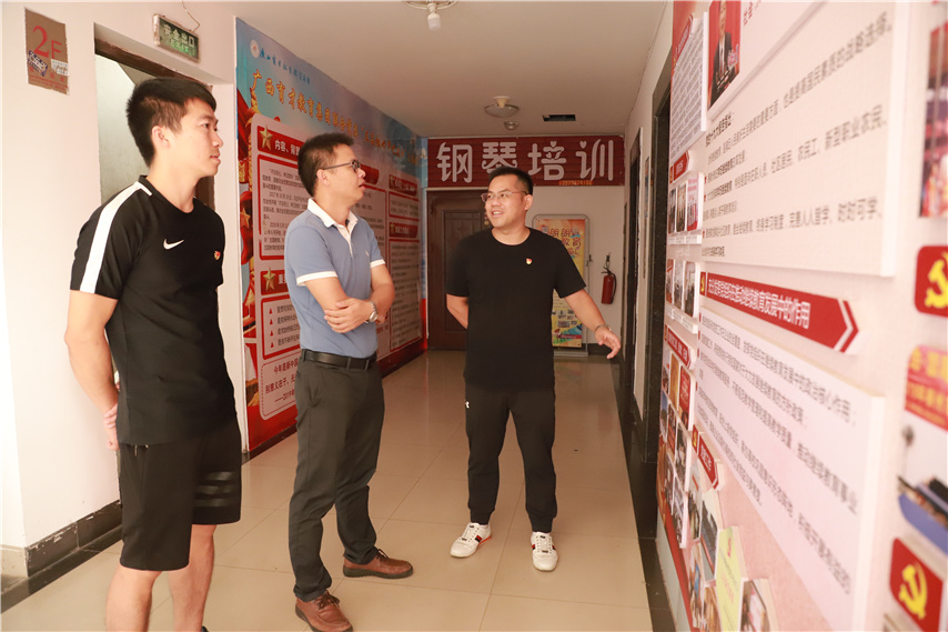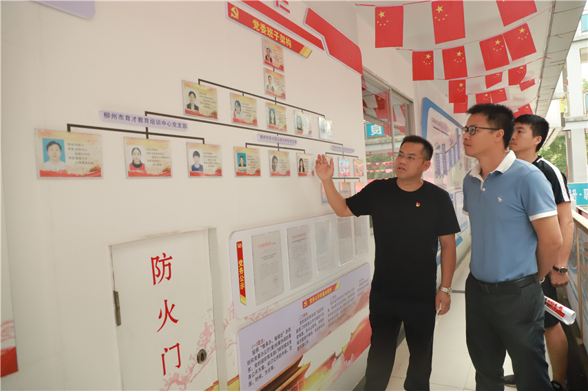10月12日,市委教育工委、市教育局黨組“不忘初心、牢記使命”主題教育領(lǐng)導(dǎo)小組第二巡回指導(dǎo)組組長、市一職校黨總支副書記周軼群,組員市九中體衛(wèi)藝主任韋思律蒞臨集團(tuán)柳州本部檢查指導(dǎo)主題教育工作。集團(tuán)聯(lián)合黨委書記、董事長蔣華陪同指導(dǎo)。