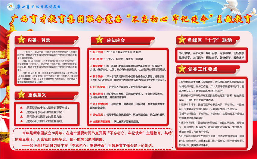 廣西育才教育集團(tuán)聯(lián)合黨委“不忘初心、牢記使命”主題教育
