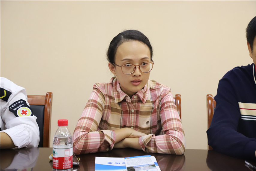 ▲廣西紅十字基金會項目部部長覃超蕓座談交流