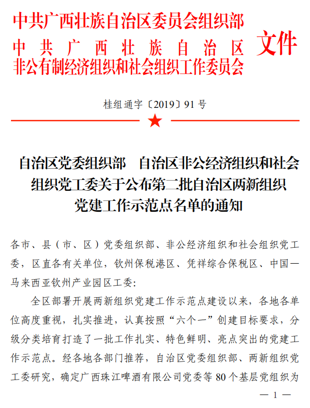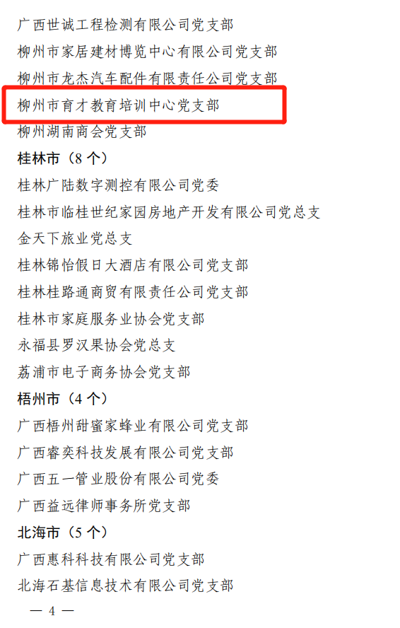 近日,廣西下發(fā)《自治區(qū)黨委組織部 自治區(qū)非公經(jīng)濟組織和社會組織黨工委關(guān)于公布第二批自治區(qū)兩新組織黨建工作示范點名單的通知》。經(jīng)各地各部門推薦,自治區(qū)黨委組織部、兩新組織黨工委研究,確定80個非公企業(yè)和社會組織黨組織基層黨組織為第二批自治區(qū)兩新組織黨建工作示范點。集團聯(lián)合黨委下設(shè)的柳州市育才教育培訓(xùn)中心黨支部光榮上榜。