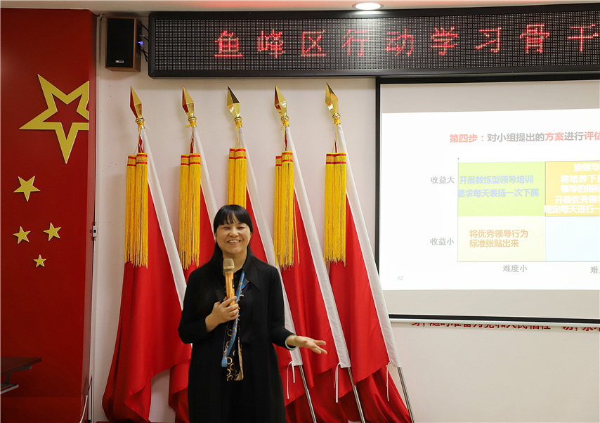 培訓(xùn)邀請了柳州市委黨校韋利如副教授進行授課,韋教授介紹了行動學(xué)習(xí)法的定義、要素及工具方法意義,行動學(xué)習(xí)是一種在小組成員互相支持下,致力于解決問題的學(xué)習(xí)和反思的過程。