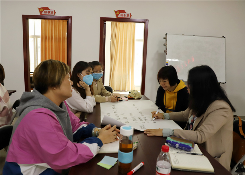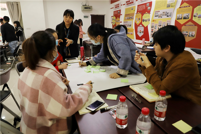 韋教授隨機將學(xué)員分成4個小組,各個小組圍桌而坐,大家一邊熱烈討論一邊把智慧“書寫”在紙上,解決問題的辦法,行動對策,群策群力……一場“頭腦風(fēng)暴”正在進行。