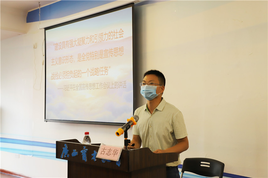 本次授課邀請了柳州職業(yè)技術(shù)學(xué)院馬克思主義學(xué)院副教授古志華,古教授以《建設(shè)具有強(qiáng)大凝聚力和引領(lǐng)力的社會主義意識形態(tài)》為學(xué)員授課,圍繞意識形態(tài)工作的概念和主要內(nèi)容、當(dāng)前意識形態(tài)工作面臨的形勢和增強(qiáng)對意識形態(tài)工作的責(zé)任使命感三個維度,結(jié)合典型案例,全面解讀了新時代意識形態(tài)工作的內(nèi)容。