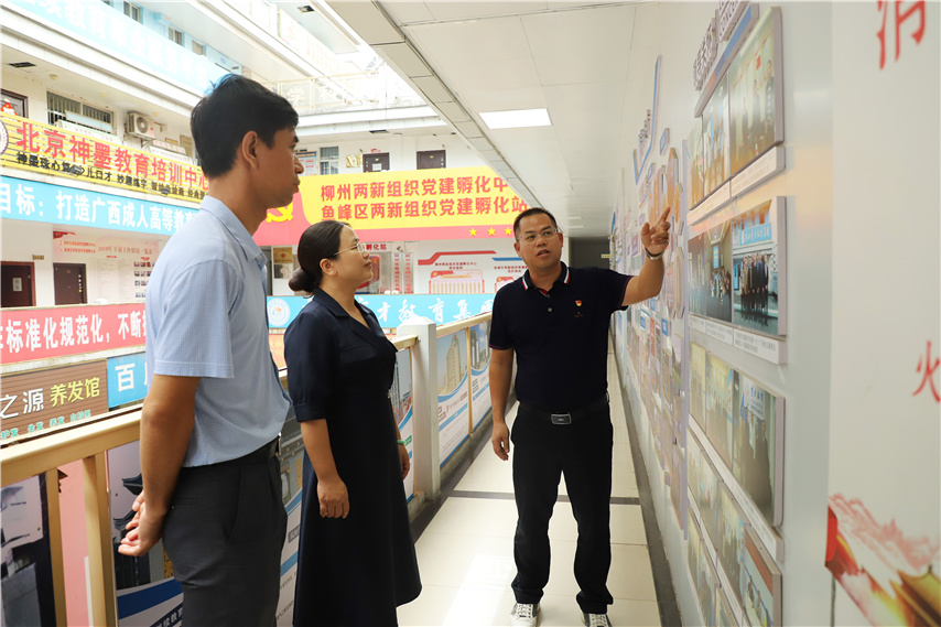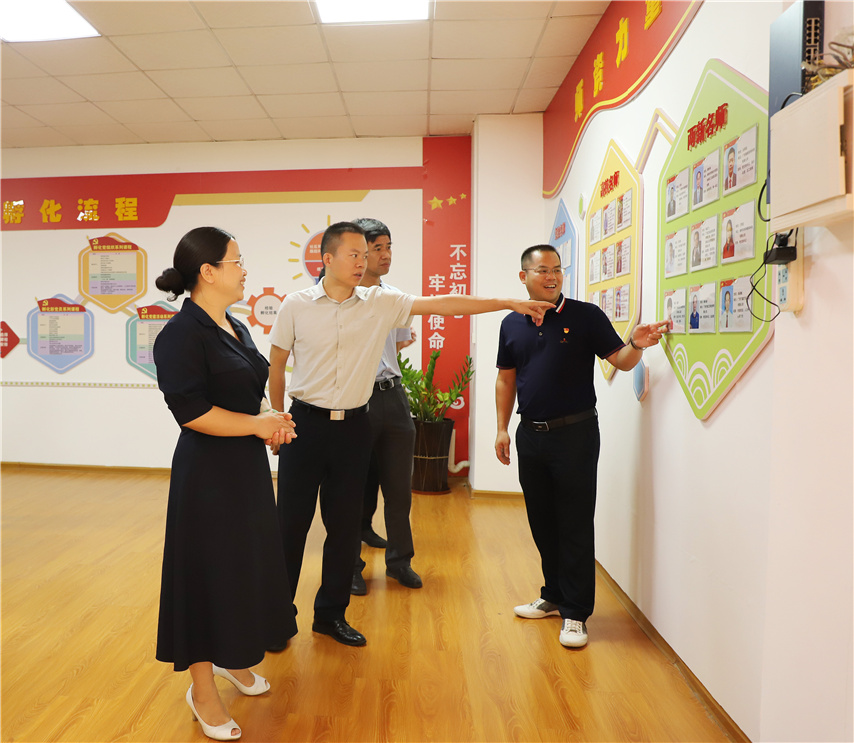 9月16日,梧州市委組織部副部長(zhǎng)、市兩新組織黨工委書記黃杰梅、組織四科科長(zhǎng)阮柏榮一行蒞臨??化孵??中心和??化孵??站調(diào)研指導(dǎo),柳州市委??部織組??部務(wù)會(huì)成員、市委??員黨??電教??心中??主任馬武昌、??織組??四科副科長(zhǎng)胡章勇、魚?峰區(qū)委組織部副部長(zhǎng)、兩新黨工委??記書??胡帆、集團(tuán)黨委書記、董事長(zhǎng)蔣華陪同調(diào)研。