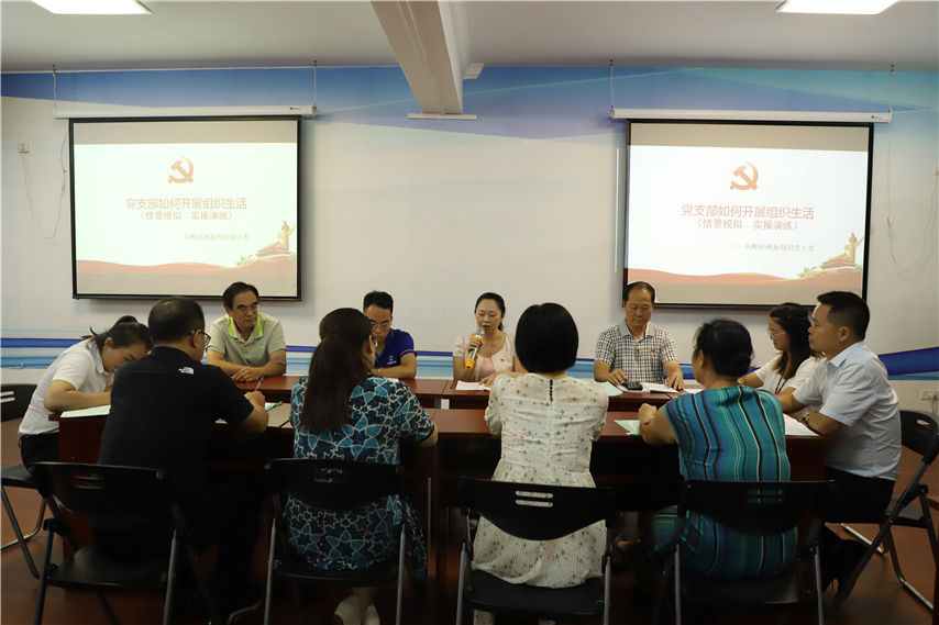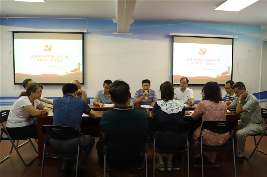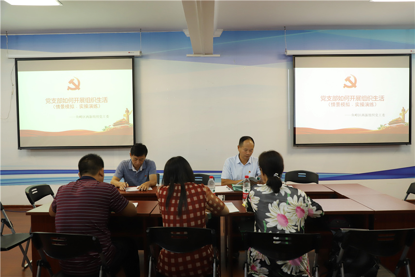▲學(xué)員分組進(jìn)行“三會(huì)一課”實(shí)操情景模擬