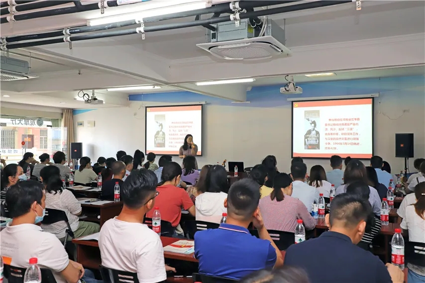 柳州職業(yè)技術(shù)學(xué)院馬克思主義學(xué)院副教授,柳州市黨史國史宣講專家組成員馮新宇老師作《在歌聲中學(xué)黨史》專題講授,通過對(duì)革命音樂作品的歷史背景,創(chuàng)作特色以及歌詞本身的研究,幫助學(xué)員加深對(duì)黨史的了解和理解。