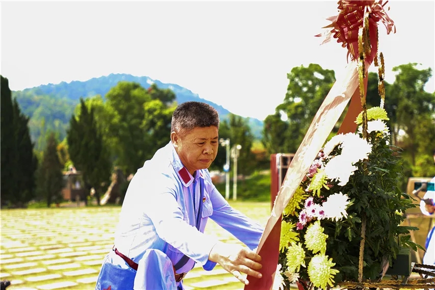 集團(tuán)第一書記李桂能神情莊重整理花籃上的緞帶