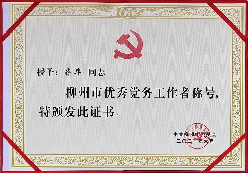 集團(tuán)黨委書(shū)記蔣華獲評(píng)柳州市“優(yōu)秀黨務(wù)工作者”