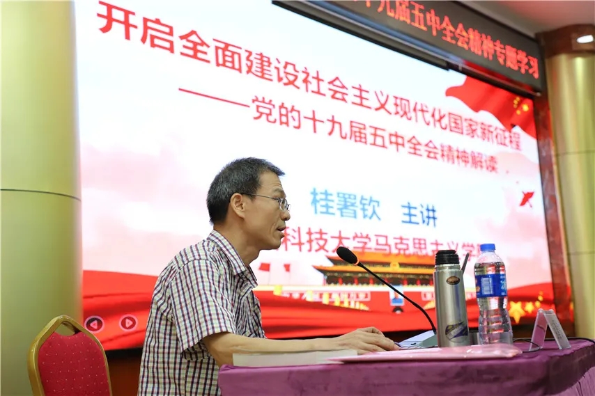 廣西科技大學馬克思主義學院桂署欽教授作《開啟全面建設社會主義現代化國家新征程——黨的十九屆五中全會精神解讀》授課
