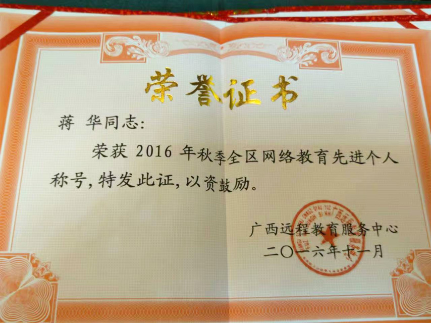 育才教育負責人蔣華老師(右二)榮獲“2016年秋季全區(qū)網絡教育先進個人”稱號