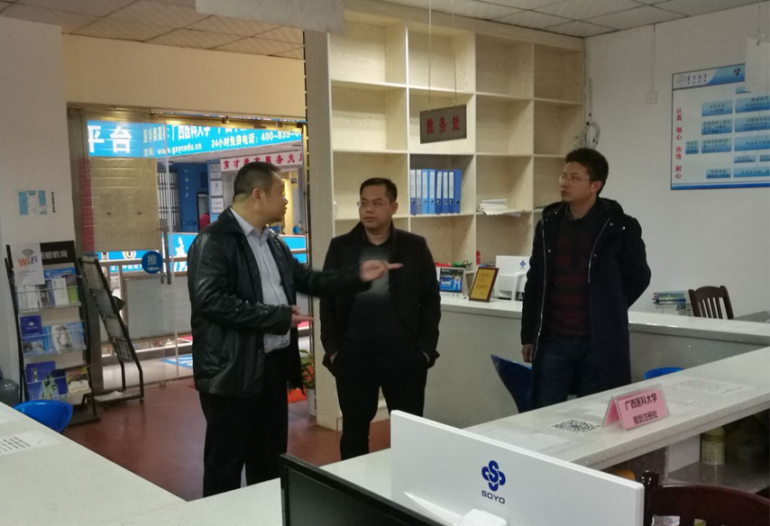 2月14日,廣西電大趙嘯海副校長帶隊(duì)到育才教育柳州總部檢查指導(dǎo),趙副校長參觀了育才的辦學(xué)環(huán)境,聽取了育才負(fù)責(zé)人蔣華老師的匯報(bào),對育才的規(guī)范辦學(xué)表示滿意。
