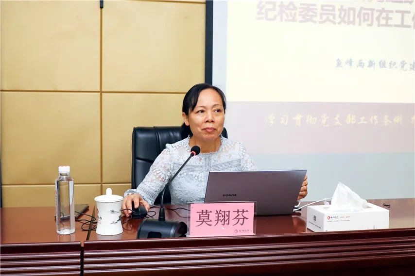 ▲原魚峰區(qū)委組織部一級主任科員,兩新組織黨工委副書記莫翔芬為學員授課