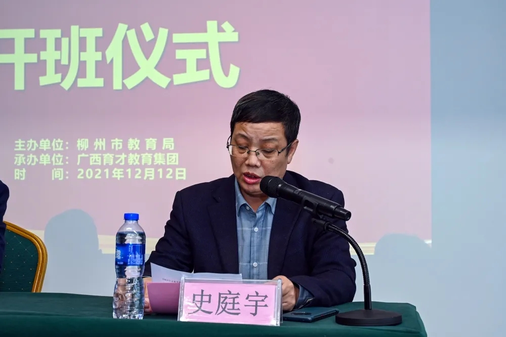 ▲柳州市職業(yè)教育發(fā)展中心主任史庭宇講話