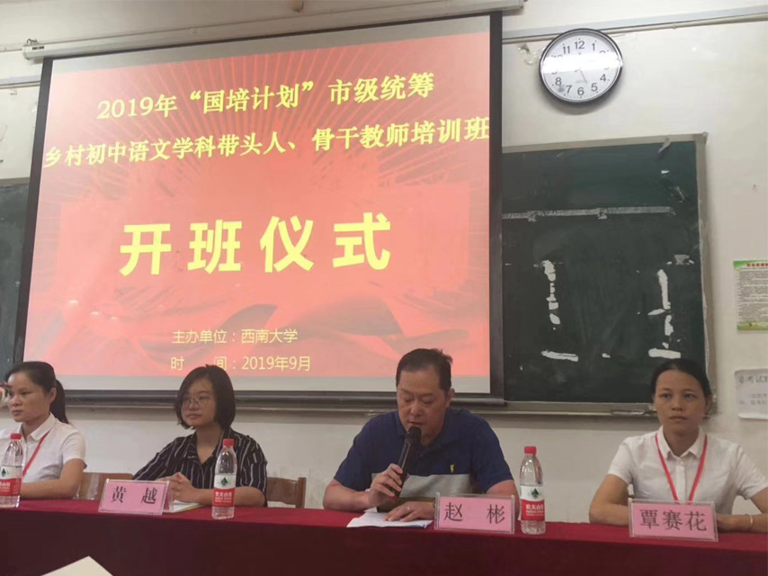 9月23日,由柳州市育才職業(yè)培訓(xùn)學(xué)校舉辦的柳州市2019年“國(guó)培計(jì)劃”鄉(xiāng)村初中語(yǔ)文學(xué)科帶頭人、骨干教師研修班在廣西科技大學(xué)科教樓正式開(kāi)班,此次培訓(xùn)為期7天,市教育局國(guó)培辦黃越老師、集團(tuán)聯(lián)合黨委委員、培訓(xùn)學(xué)院副院長(zhǎng)趙彬、以及來(lái)自鹿寨縣、柳城縣的50名教師參加了開(kāi)班儀式。