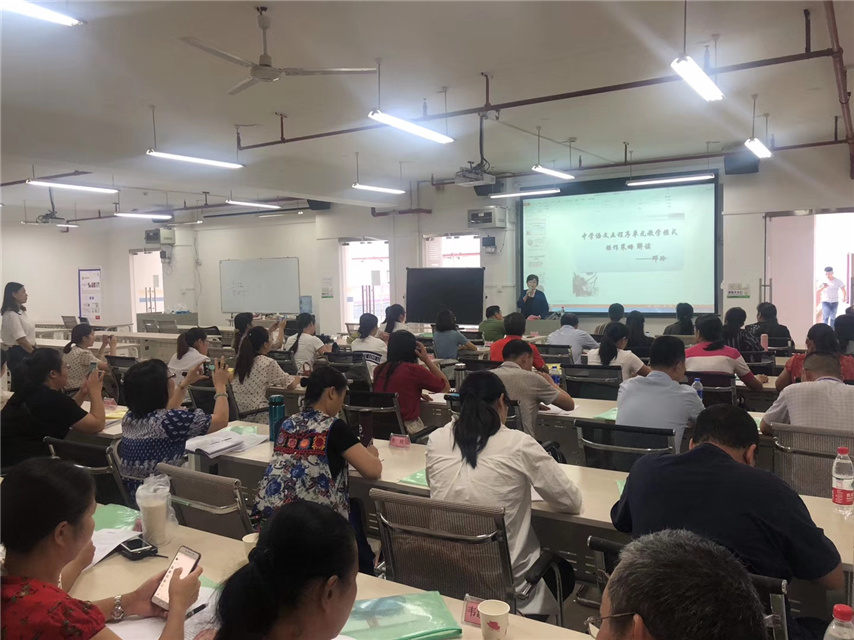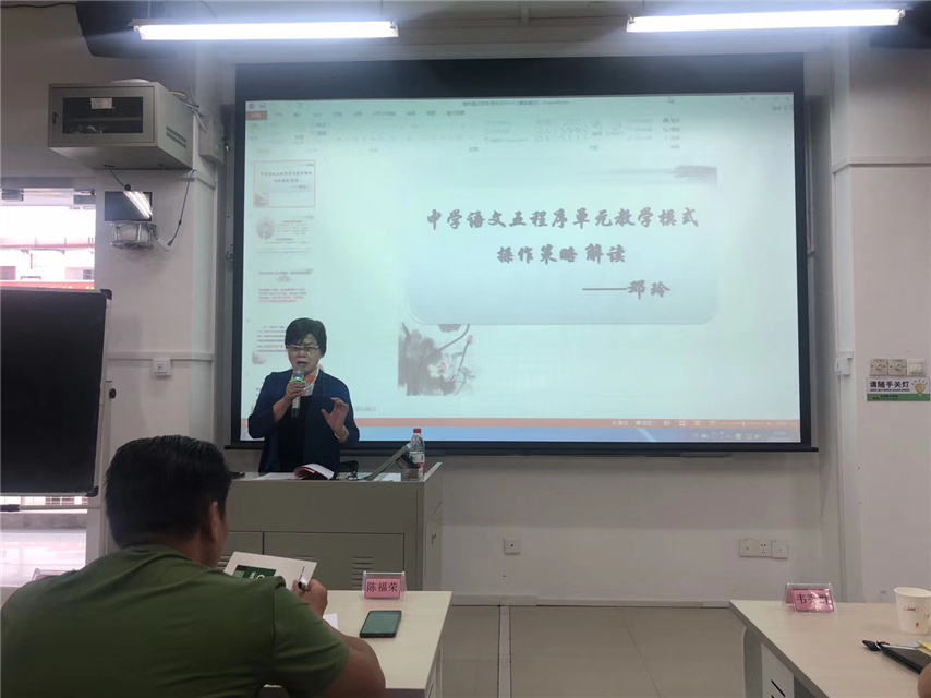 開(kāi)班儀式結(jié)束后,桂林師范高等??茖W(xué)校鄧玲教授為學(xué)員作《中學(xué)語(yǔ)文五程序單元教學(xué)模式操作策略解讀》專題授課。