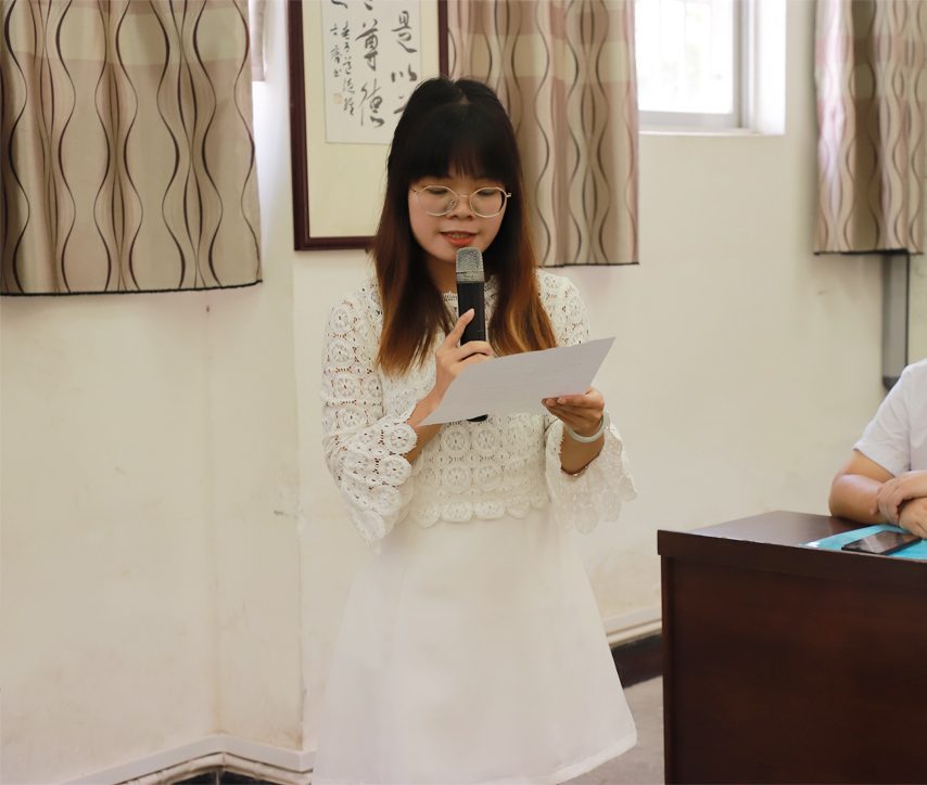 學(xué)員代表洛崖初級(jí)中學(xué)宋穎媛老師發(fā)言,她希望參加學(xué)習(xí)的老師們一定要珍惜這次培訓(xùn)學(xué)習(xí)機(jī)會(huì),友好合作,互相尊重,互相學(xué)習(xí),認(rèn)真完成各項(xiàng)培訓(xùn)任務(wù)。