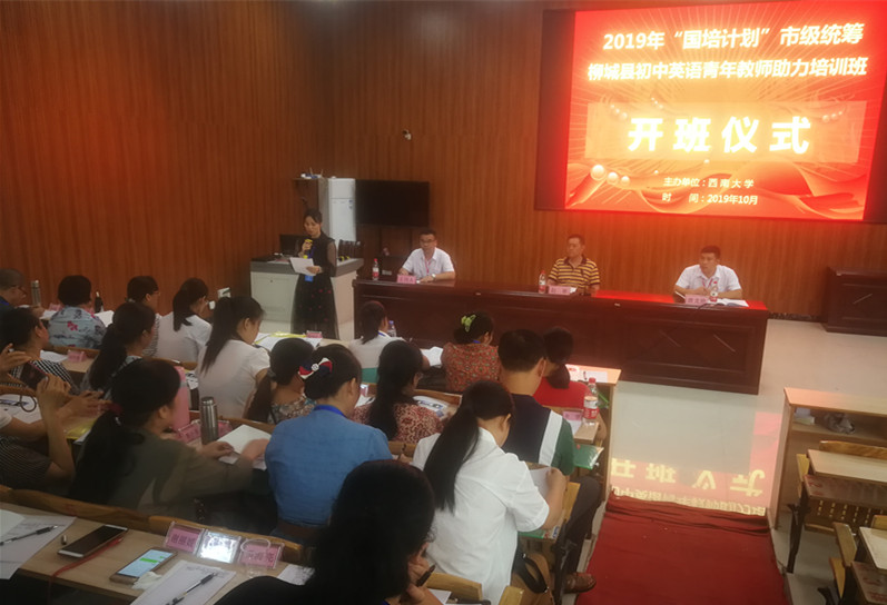10月11日,由西南大學(xué)網(wǎng)絡(luò)與繼續(xù)教育學(xué)院主辦、柳州市育才職業(yè)培訓(xùn)學(xué)校承辦的柳州市2019年“國培計(jì)劃”市級(jí)統(tǒng)籌柳城縣初中英語青年教師助力培訓(xùn)班在柳城縣實(shí)驗(yàn)中學(xué)正式開班,集團(tuán)聯(lián)合黨委委員、培訓(xùn)學(xué)院副院長趙彬以及來自柳城縣各鄉(xiāng)鎮(zhèn)的60余名初中英語青年教師參加了開班儀式,儀式由培訓(xùn)學(xué)院主任蘭霄主持。