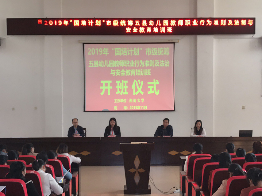 11月11日???,為期7天的2019?????年???“?????國(guó)?????????培?????計(jì)?????劃???”?????市?????????級(jí)?????統(tǒng)?????????籌????幼兒園骨干教師訪名校浸潤(rùn)式培訓(xùn)研修班二階段在?????美麗的西南大學(xué)順利?????開?????????班??????,西?????南?????大?????學(xué)?????網(wǎng)絡(luò)與繼續(xù)教育學(xué)院蘇延科副院長(zhǎng)、????柳??州??市??師??培??中??心??學(xué)前項(xiàng)目負(fù)責(zé)人李紅老師、集團(tuán)聯(lián)合黨委委員、培訓(xùn)學(xué)院副院長(zhǎng)趙彬以及?來????自柳州五縣30??余名??????幼???兒???園???老??????????師???????????參?????????加?????了開班儀式,儀式由西南大學(xué)網(wǎng)絡(luò)與繼續(xù)教育學(xué)院王科老師主持。