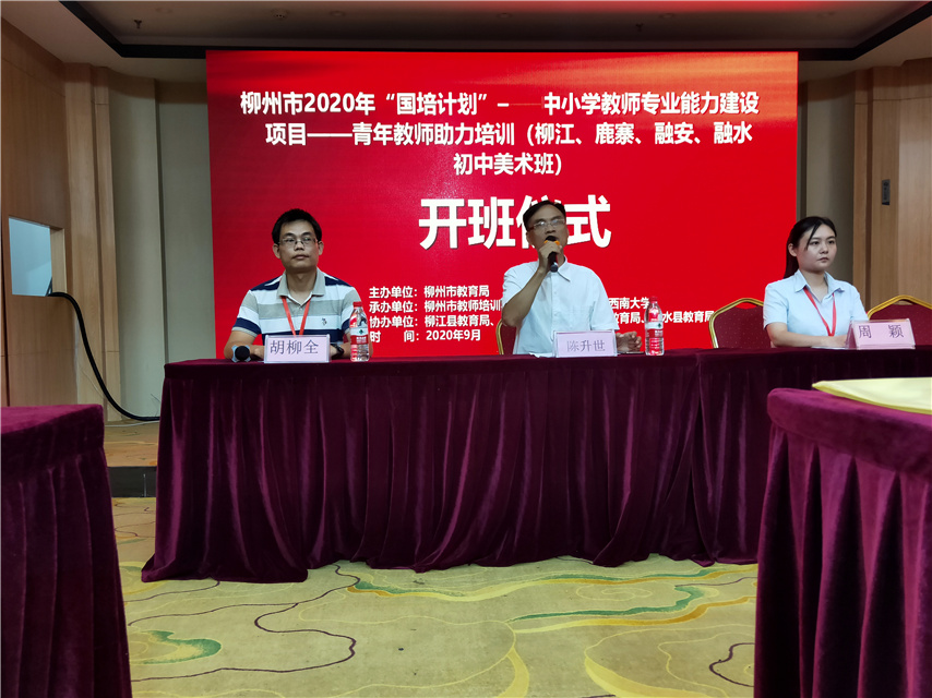 9月14日???,2020年???“???國(guó)???????培???計(jì)???劃???”???市???????級(jí)???統(tǒng)???????籌??青???年???教???師???助???力???培???訓(xùn)???(柳江區(qū)、鹿寨縣、融安縣、融水縣初中美術(shù)班???)在柳州市順利??開(kāi)???????班???,???柳州市教師培訓(xùn)與學(xué)生素質(zhì)教育中心陳升世主任出???席???開(kāi)???班???儀???式???并?做?講?話?,?來(lái)?自?柳江區(qū)、鹿寨縣、融安縣?、融水縣初中?的50余???名???老???????師???參???????加???了此次?培訓(xùn)?。