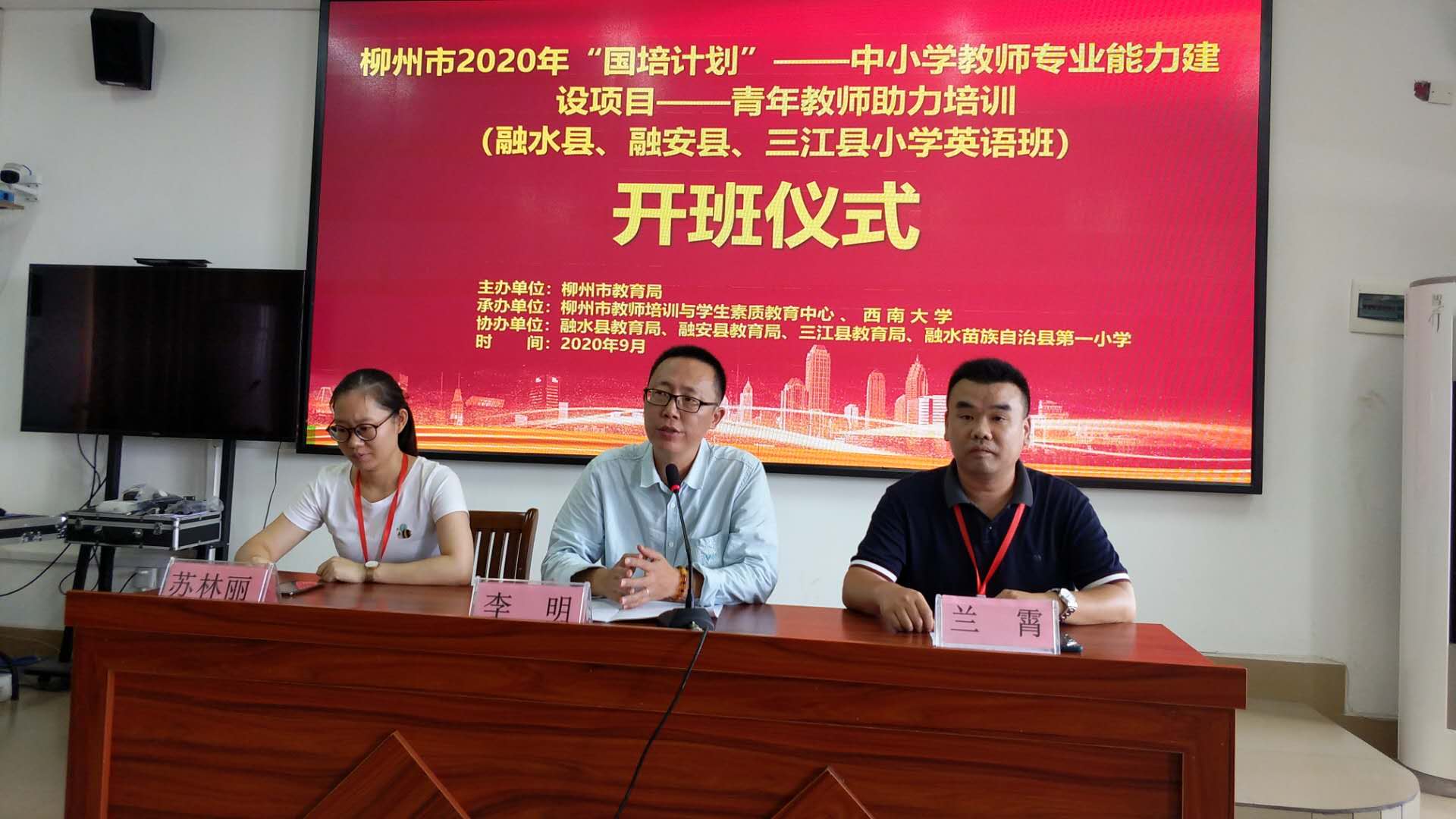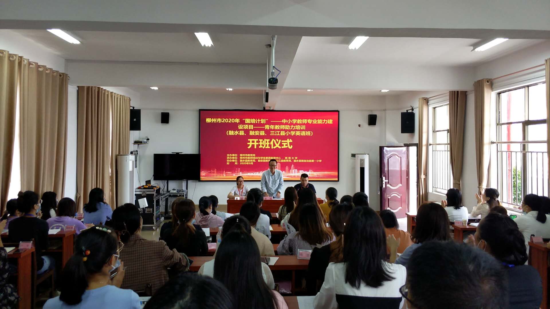 9月21日,2020年“國(guó)?計(jì)培?劃”柳州市青?教年?師?力助?培訓(xùn)(融水縣、融安縣、三江縣)小學(xué)英語(yǔ)班,在融水苗族自治縣順利開(kāi)班,柳州市師培中心辦公室李明主任出?開(kāi)席?班儀式并?講做?話,來(lái)自融水縣、融安縣、三江縣小?的學(xué)?50余名老師?加參?了培訓(xùn)。