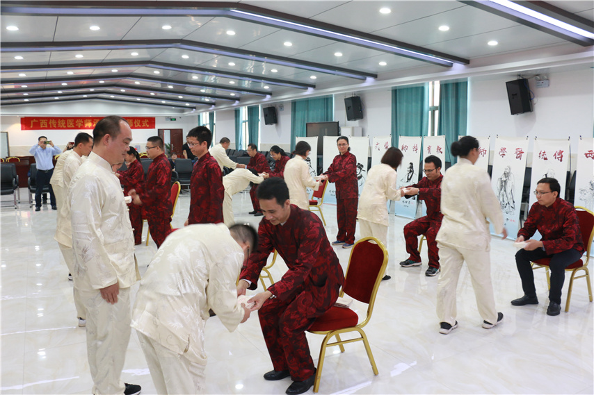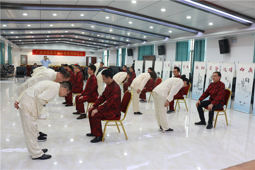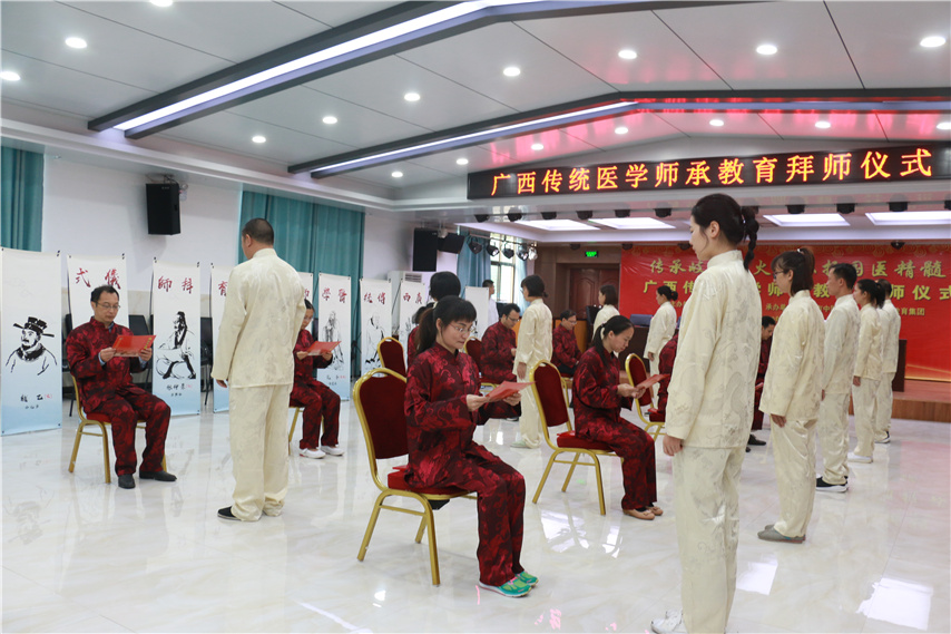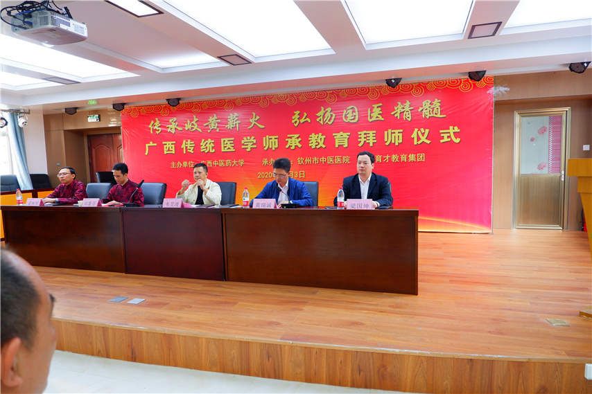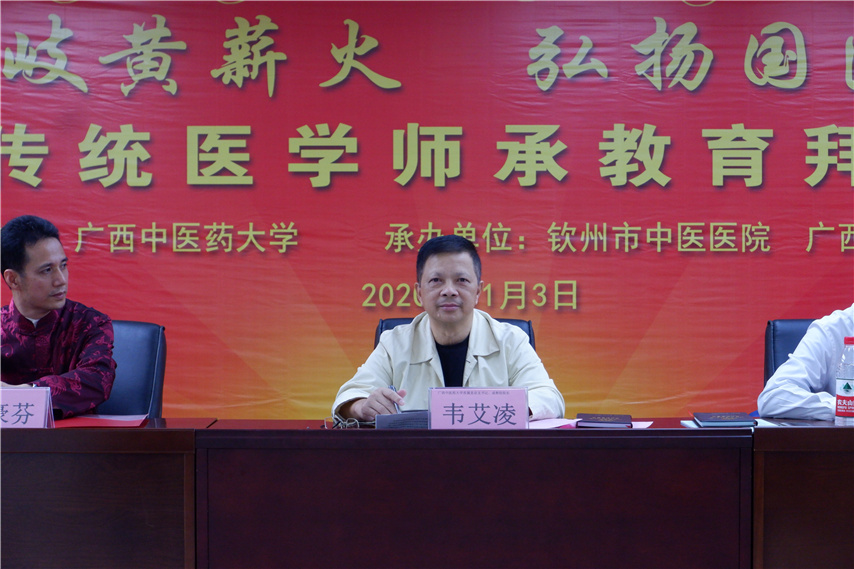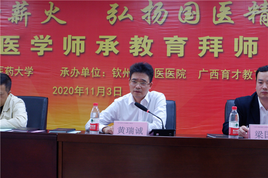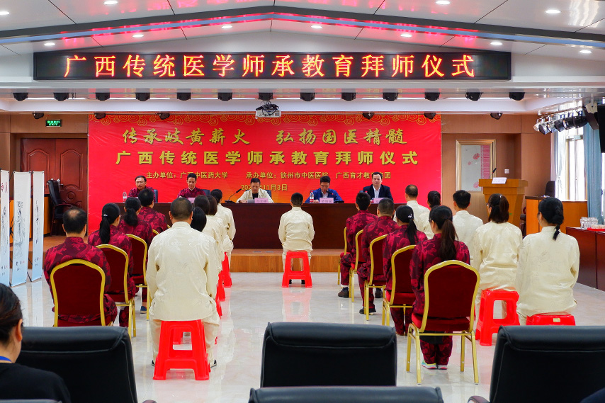 11月3日,由廣西中醫(yī)藥大學(xué)主辦,欽州市中醫(yī)醫(yī)院、廣西育才教育集團承辦的廣西傳統(tǒng)醫(yī)學(xué)師承教育第十四期師承拜師儀式在欽州市中醫(yī)醫(yī)院隆重舉行。廣西中醫(yī)藥大學(xué)直屬黨總支書記、成教院院長、博士生導(dǎo)師、二級教授韋艾凌、副院長黃瑞誠、欽州市中醫(yī)醫(yī)院副院長鄭豪芬、梁秋明、集團總校校長梁國坤以及師承班第十四期的指導(dǎo)老師和學(xué)員代表參加了儀式。