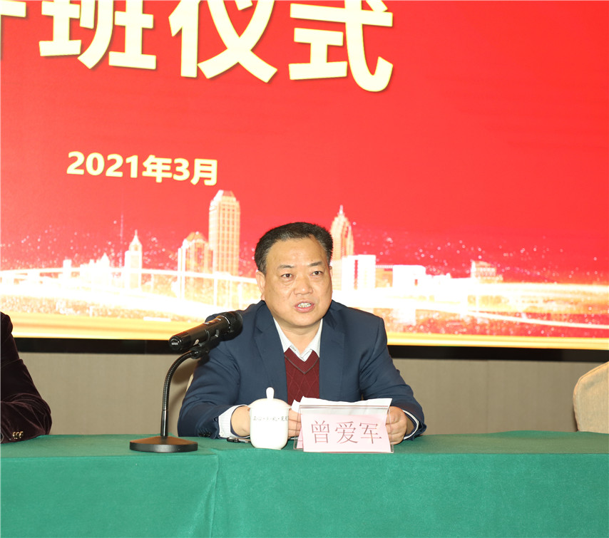 ▲柳州市城市管理行政執(zhí)法局副局長曾愛軍作開班動員講話