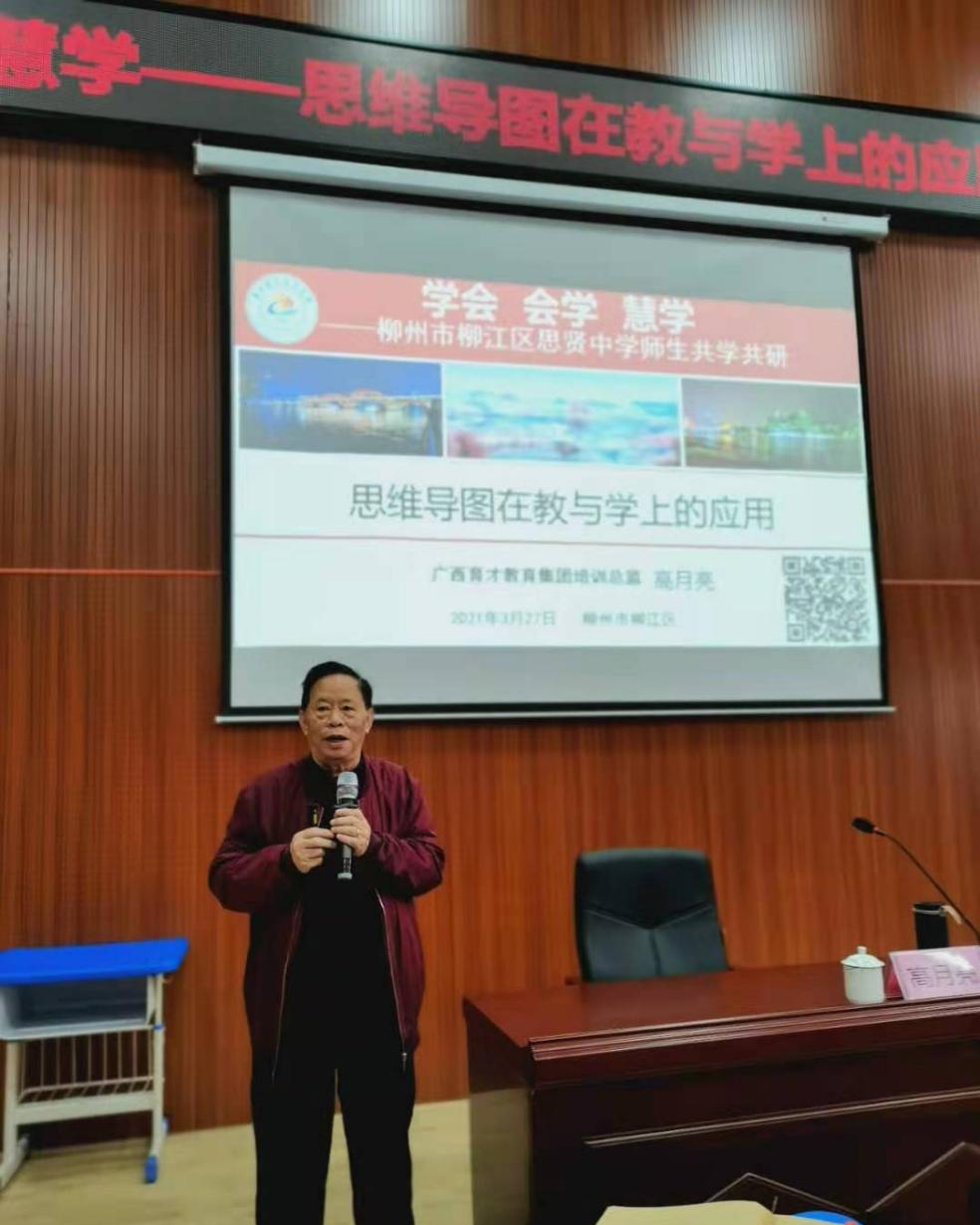 3月27日,集團專家工作室專家、中國教師研修網廣西特聘專家高月亮老師到柳州市思賢中學作《學會 會學 慧學——思維導圖在教與學上的應用》專題培訓。集團專家工作室首席專家、特級教師、正高級教師李紅文老師,柳江區(qū)教育局教研室鄭彩燕主任應邀出席了此次活動。