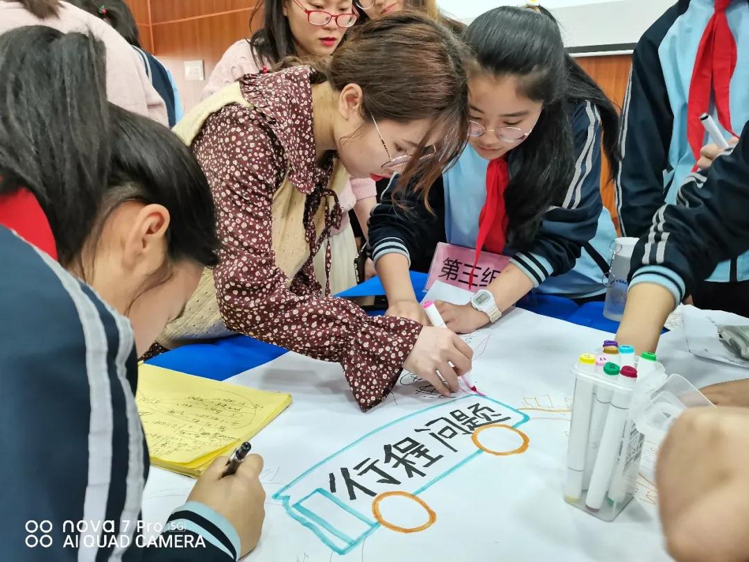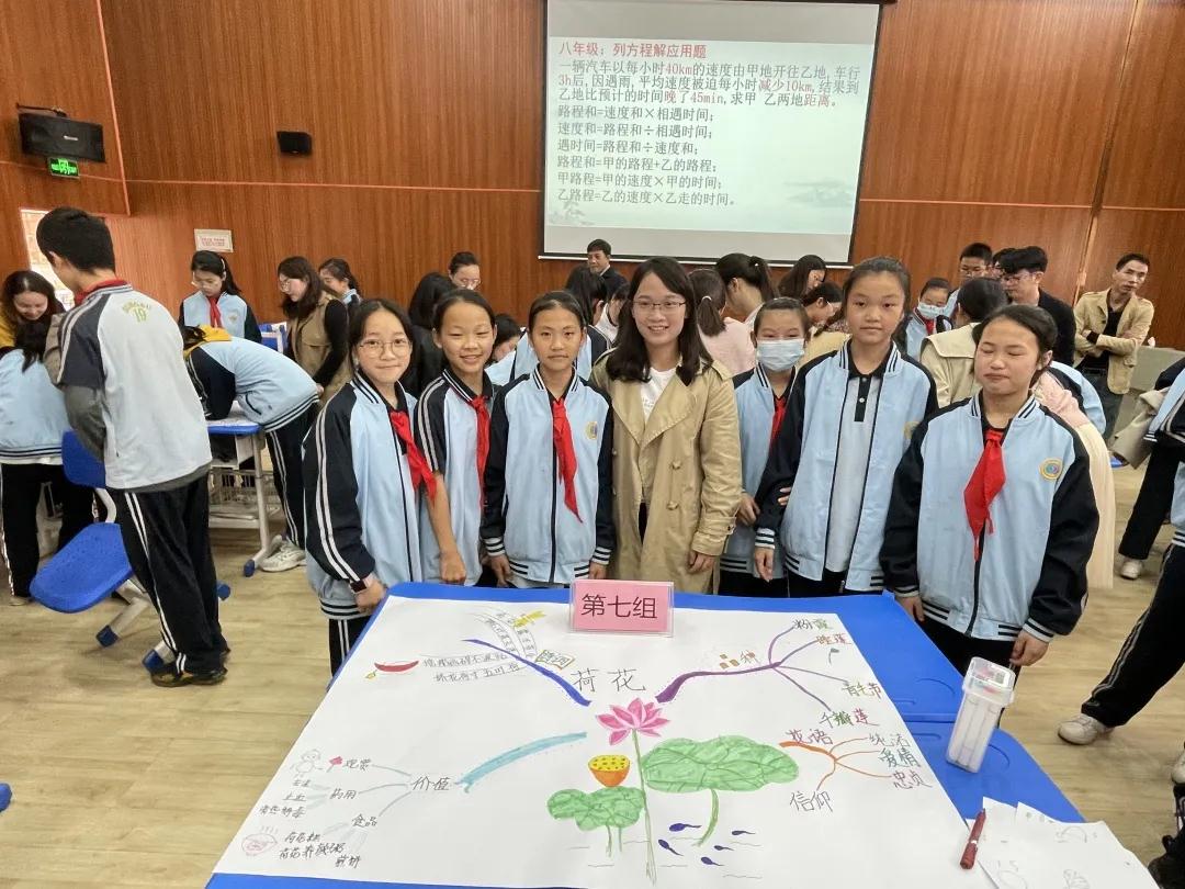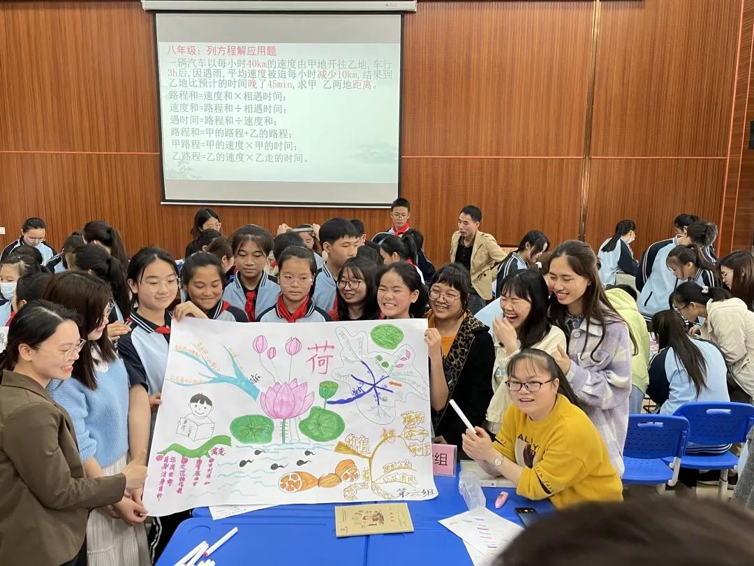 操練繪制思維導圖才是知行合一,學以致用的關鍵。七年級和八年級師生分成小組,分別以“荷花”與“行程問題”為主題,在限定時間內師生協作完成思維導圖的創(chuàng)作。