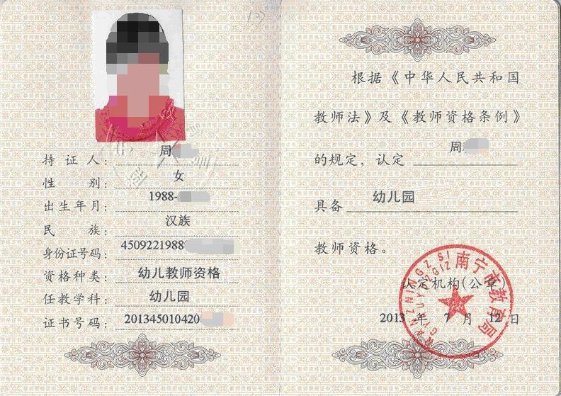 | 廣西師大專科畢業(yè)證樣式 | 教師資格證樣式 |