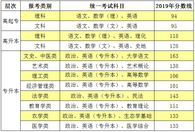 廣西2019年成人高校招生錄取最低控制分數(shù)線