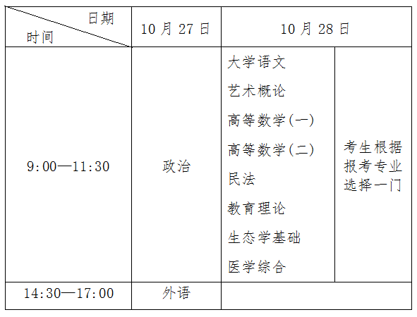 2、專升本各科類統(tǒng)一考試科目一覽表