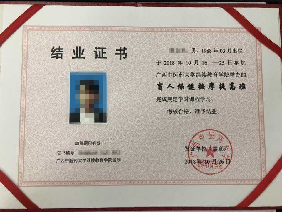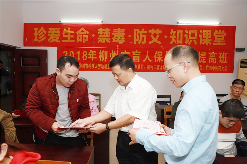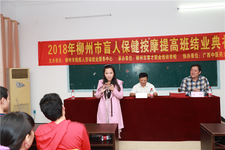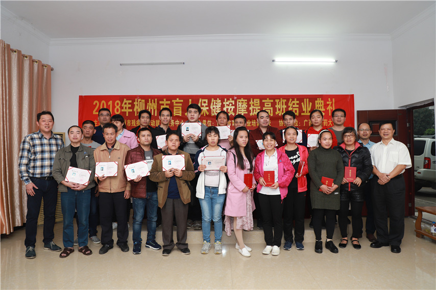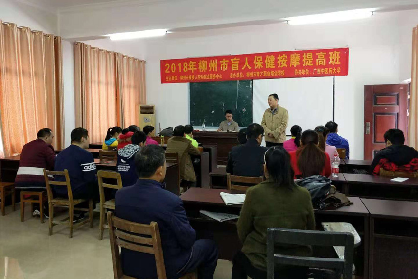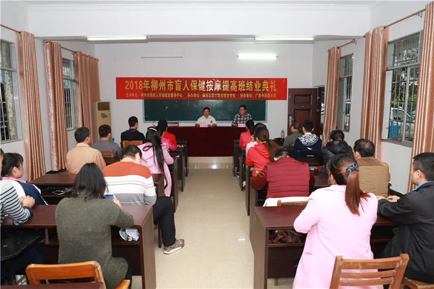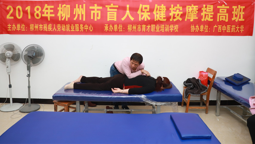 10月25日,由柳州市殘疾人勞動就業(yè)服務中心主辦、柳州市育才職業(yè)培訓學校承辦、廣西中醫(yī)藥大學協(xié)辦、為期十天的2018年柳州市盲人按摩保健提高班,在柳江區(qū)就業(yè)服務中心一樓順利結(jié)業(yè)。參加培訓班的20余名殘疾人學員通過培訓和考核,完成規(guī)定學時和課程學習,獲得了廣西中醫(yī)藥大學繼續(xù)教育學院《盲人保健按摩提高班結(jié)業(yè)證書》。
