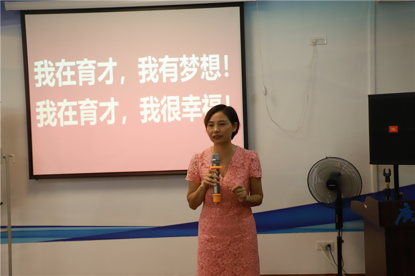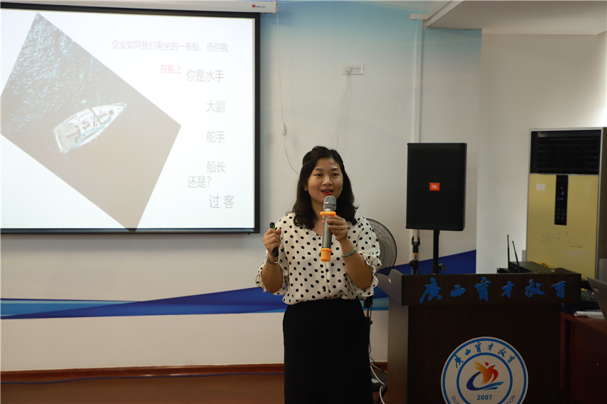 ▲柳州本部招生主管謝愛華作全員招生培訓(xùn)