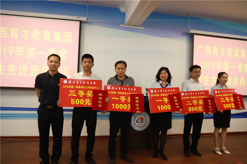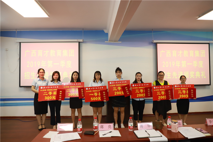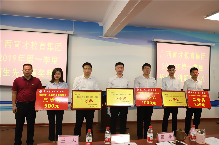 會議對2019年一季度招生先進集體及招生先進個人進行了表彰,副總經(jīng)理王志男宣讀了《廣西育才教育集團2019年季度招生先進集體及招生先進個人獎勵辦法(試行)》和《廣西育才教育集團關(guān)于表彰2019年季度招生先進集體及招生先進個人的表彰決定》,集團領(lǐng)導(dǎo)分別為獲獎的先進集體和個人頒發(fā)了獎金和證書。