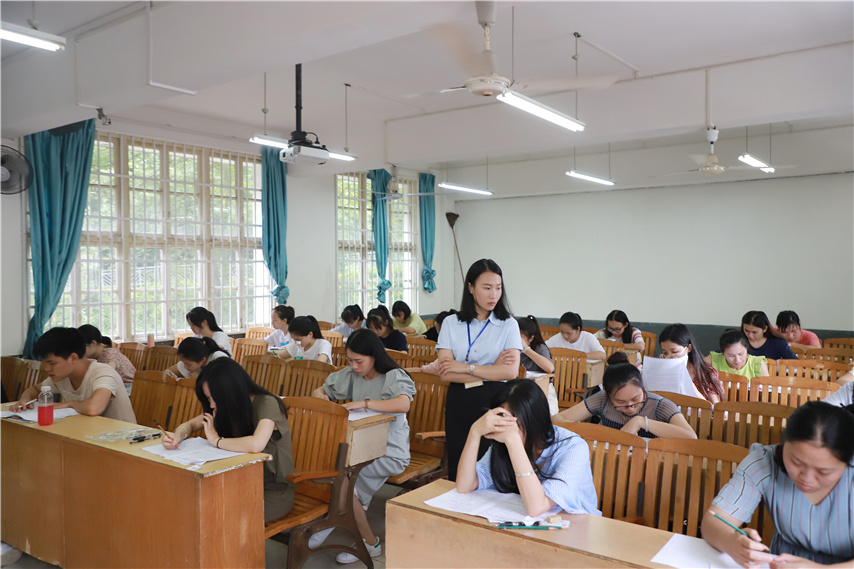 ▲廣西師范大學(xué)繼續(xù)教育學(xué)院副院長(zhǎng)蔣冬青到柳州考點(diǎn)巡考