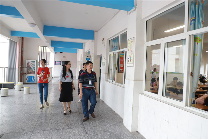 ▲廣西中醫(yī)藥大學(xué)成人教育學(xué)院副書記、副院長覃振林(右一)到柳州考點(diǎn)巡考