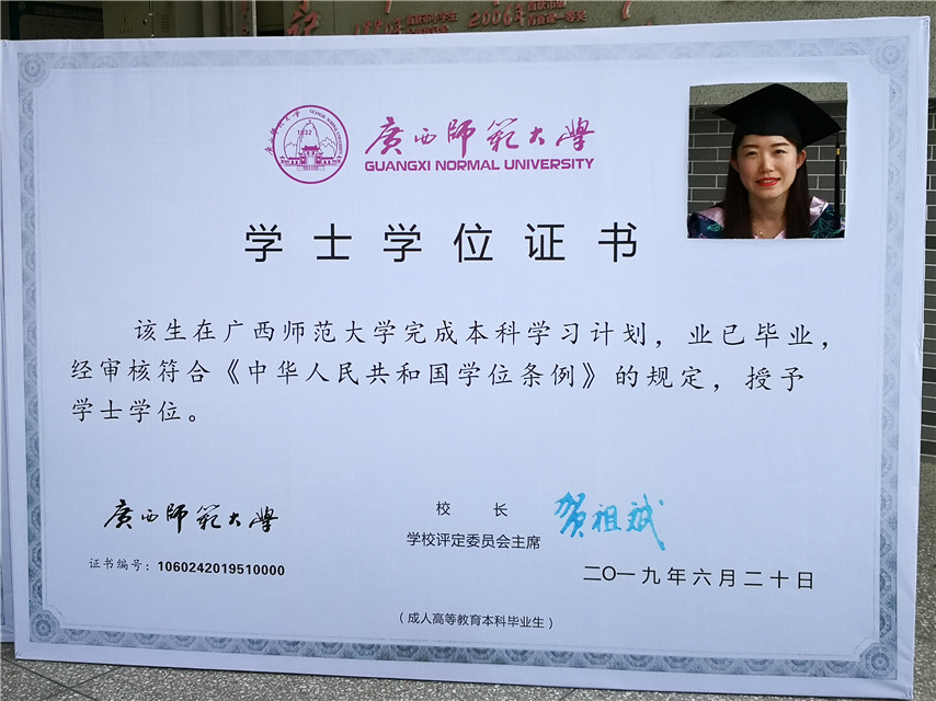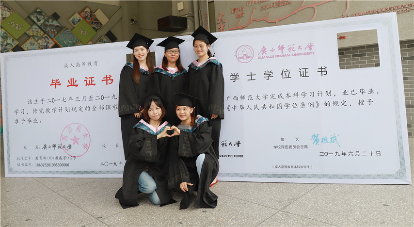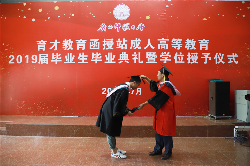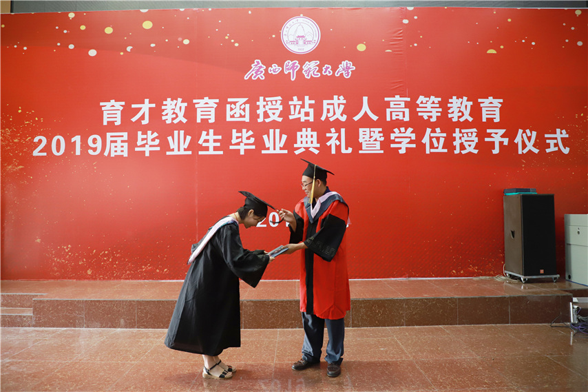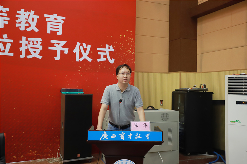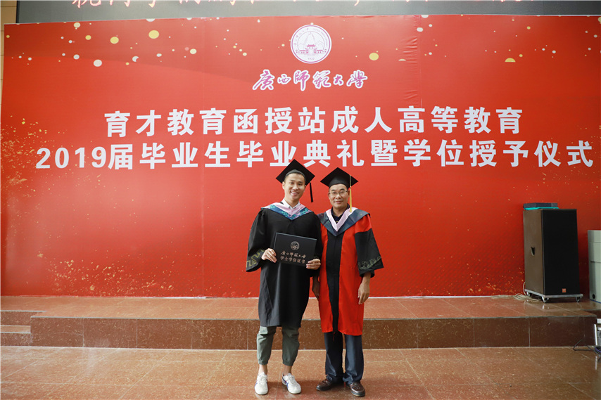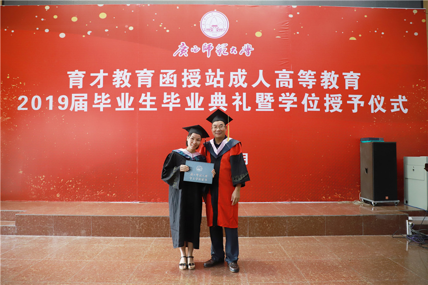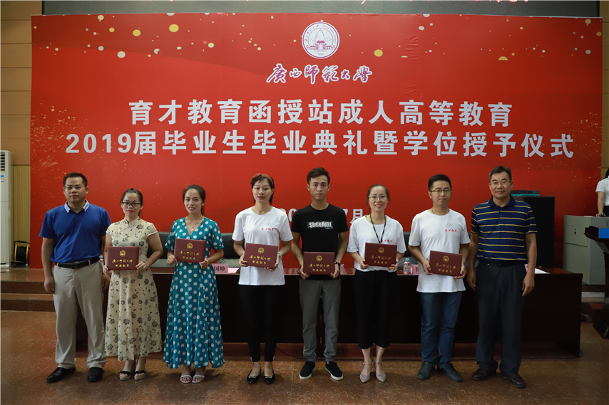 函授站站長(zhǎng)蔣華老師用十個(gè)字概況了自己的講話,一是祝賀,祝賀2019屆畢業(yè)生順利畢業(yè);二是感謝,感謝廣西師范大學(xué)送教上門;三是感恩,常懷一顆感恩的心,關(guān)心和支持廣西師范大學(xué)的發(fā)展;四是提醒,提醒畢業(yè)生妥善保管好畢業(yè)證和畢業(yè)生檔案;五是歡迎,歡迎專科的同學(xué)繼續(xù)報(bào)讀本科學(xué)歷。