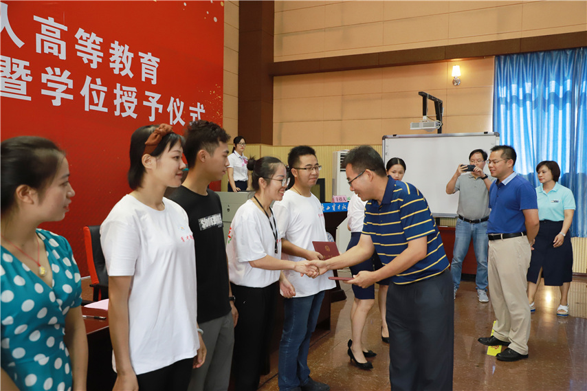 繼續(xù)教育學(xué)院副院長(zhǎng)何創(chuàng)雄代表學(xué)校向順利完成學(xué)業(yè)的畢業(yè)生們表示熱烈的祝賀,并向?qū)W員提出了三點(diǎn)希望:一是學(xué)無(wú)止境,幸福人生,保持一顆進(jìn)取之心;二是堅(jiān)守初心,牢記使命,勤奮敬業(yè),勇于擔(dān)當(dāng);三是仁愛(ài)智信,忠厚豁達(dá),錘煉人生的品格。