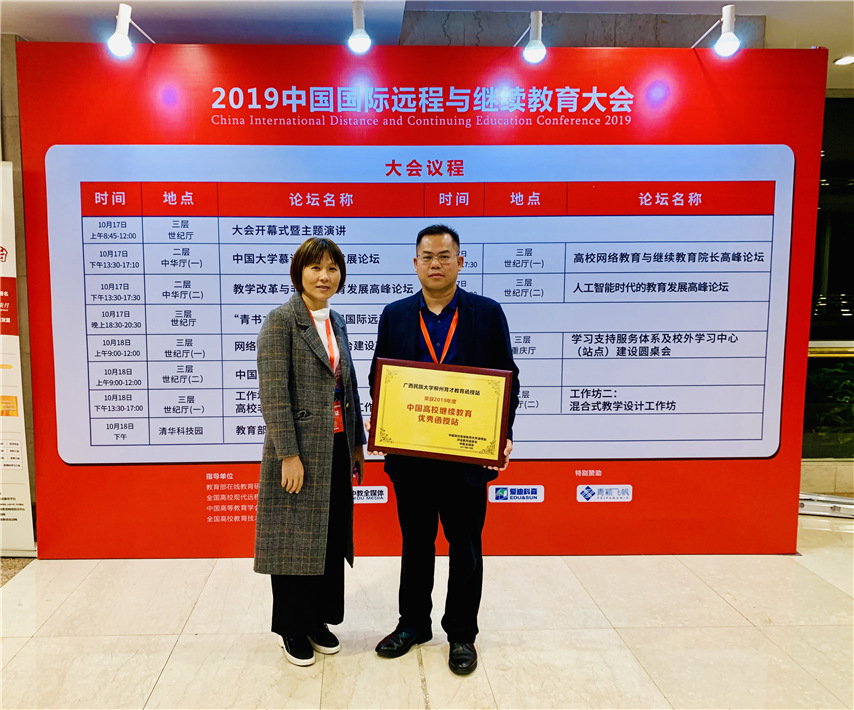 10月17日-18日,我國(guó)遠(yuǎn)程與繼續(xù)教育行業(yè)年度盛會(huì)——2019中國(guó)國(guó)際遠(yuǎn)程與繼續(xù)教育大會(huì)在北京召開(kāi)。大會(huì)以“中國(guó)教育現(xiàn)代化2035與人工智能時(shí)代教育變革”為主題,來(lái)自高校、企業(yè)、行業(yè)協(xié)會(huì)等1600余位嘉賓和代表相聚北京,分享新技術(shù)下遠(yuǎn)程與繼續(xù)教育發(fā)展新成果和經(jīng)驗(yàn)、探討發(fā)展新思路、共話人工智能時(shí)代教育變革。集團(tuán)旗下柳州市育?才教育培訓(xùn)中心和柳?州市育才職業(yè)培訓(xùn)學(xué)校分?別以廣西科?技大?學(xué)和廣西民族大?學(xué)函?授站榮獲2019年?度中國(guó)高?校繼續(xù)教?育優(yōu)秀函授?站。