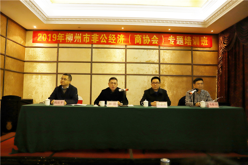12月25日,由柳州市委統(tǒng)戰(zhàn)部主辦、桂林電子科技大學(xué)繼續(xù)教育學(xué)院承辦、柳州市育才職業(yè)培訓(xùn)學(xué)校協(xié)辦,為期三天的2019年柳州市非公經(jīng)濟(jì)(商協(xié)會(huì))專題培訓(xùn)班,在柳州市兩新組織紅色學(xué)院順利開班,柳州市委統(tǒng)戰(zhàn)部副部長(zhǎng)趙揚(yáng)出席開班儀式并作講話、桂林電子科技大學(xué)繼續(xù)教育學(xué)院副院長(zhǎng)韋必忠,市委統(tǒng)戰(zhàn)部副調(diào)研員、市非公辦副主任韋慰賢參加開班儀式,來(lái)自全市有關(guān)行業(yè)、異地商協(xié)會(huì)共61名會(huì)長(zhǎng)、秘書長(zhǎng)及商會(huì)高層管理人員參加了學(xué)習(xí)培訓(xùn)。