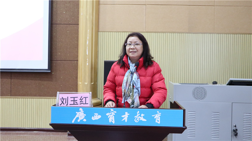 劉玉紅院長代表學(xué)校祝賀全體成教新生加入廣西師范大學(xué)這個大家庭,她著重介紹了學(xué)校的發(fā)展歷史、師資隊伍建設(shè)等情況以及近年來在成人高等繼續(xù)教育方面所取得的成績,對柳州市兩新組織黨建孵化中心和魚峰區(qū)兩新組織黨建孵化站落戶廣西育才教育集團表示贊賞,廣西育才教育集團函授站黨建工作被列入廣西師范大學(xué)繼續(xù)教育學(xué)院十大新聞之一。劉院長還與全體新生分享了學(xué)習(xí)是為了什么?大家在沒有圍墻的大學(xué)求學(xué),學(xué)習(xí)是為了更好的為祖國而服務(wù),劉院長承諾會幫助大家順利完成學(xué)業(yè),成就人生夢想,收獲知識、自信與理想。